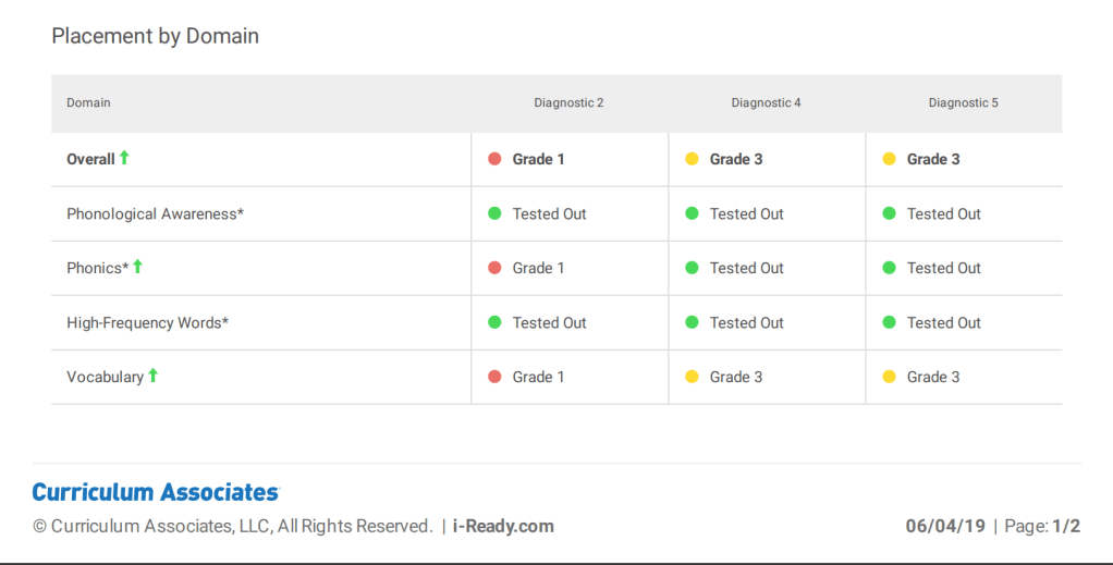 Yep, you read that right. My kid is now a full grade level ahead in reading. She started reading in February of 2019, a little over a year ago, and she has not only caught up with her peers, she has surpassed them (from a numerical measurement perspective).