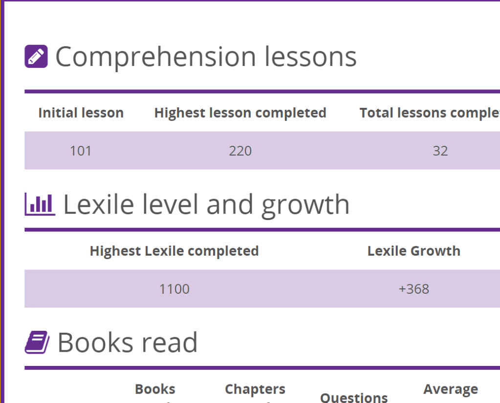 You can see from the report that it wasn’t only her ability to decode, but also her comprehension for both literature and information text.