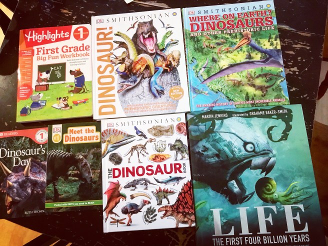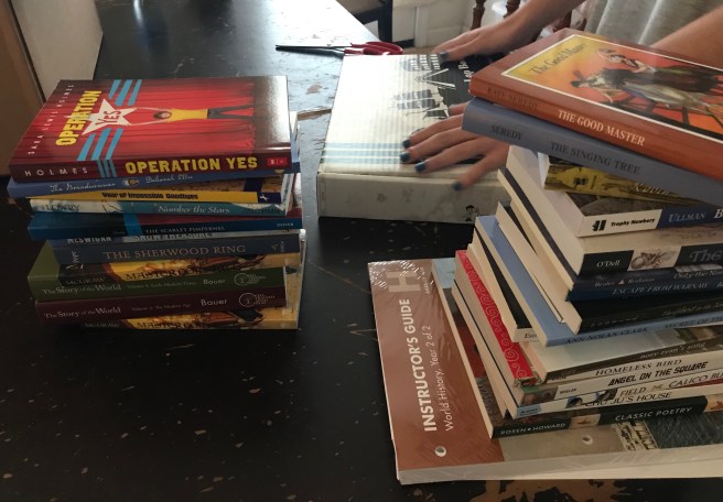 So, here it is! You can find the full list of everything we will be using here, here, and here. (This is about 80% of everything. Some grammar & math books, etc. not pictured.)