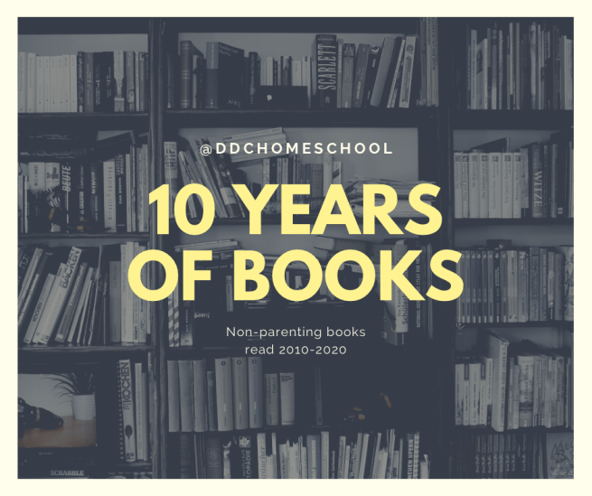 I thought it might be sort of interesting to share some of the books that I’ve enjoyed reading over the past decade. I restrained myself from sharing about homeschooling or parenting related books, in the hopes of encouraging other parents to read beyond those genres, eventhough those I consume a much larger volume of those kinds of books. I did read some other books that I have chosen to exclude from this list because they weren’t particularly interesting or I wouldn’t necessarily recommend them.