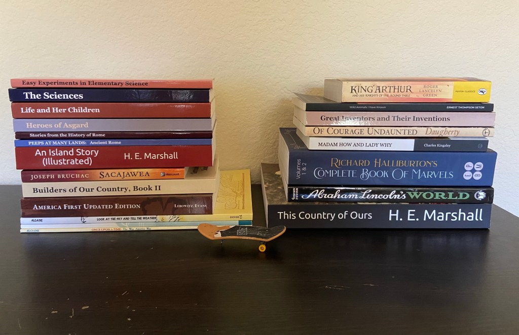 So without further adieu, here are our 2022-2023 Homeschool Curriculum Picks, with tons of secular selections. (Note: I believe Ambleside Online & The CMEC are the only providers listed below that have any religious content. We are not using any of the Christian titles contained in their lists. However, I am trying one of the titles for our Jewish learning, but I have not included that below.)